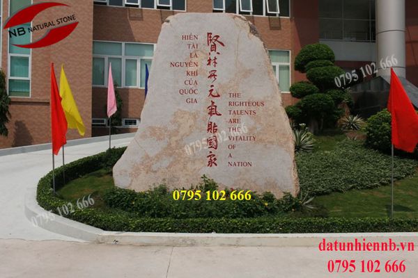 Biển hiệu đá tự nhiên liền khối ngày càng thịnh hành trong các đô thị mới, các công ty hay các địa danh. Với đặc điểm bền, đẹp và vững chắc... ngày càng nhiều người yêu thích và sử dụng. Biển có nhiều kích thước với đủ các mầu sắc, chữ khắc chìm hoặc nổi tùy theo yêu cầu của Quý khách.