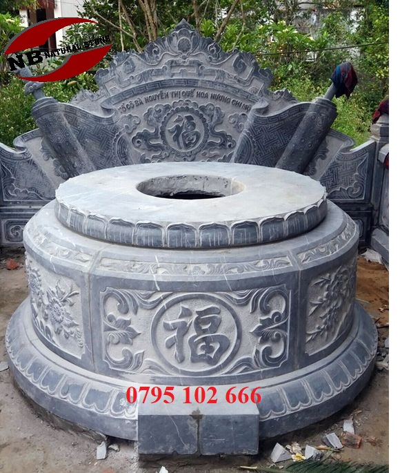 Mẫu Mộ đá xanh đen hình tròn, mẫu mộ này có thể làm đá nguyên khối toàn bộ hoặc ghép từ 2 miếng trở lên.