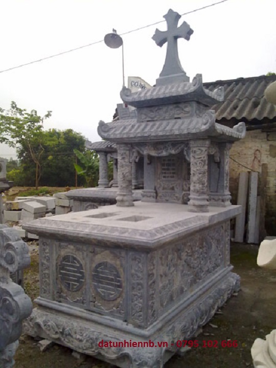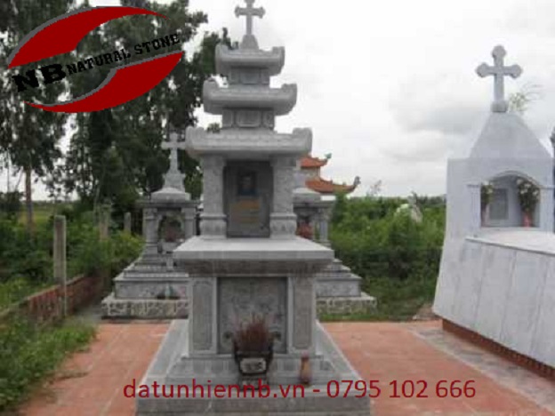 Mộ công giáo có rất nhiều kiểu dáng và chất liệu nhưng cơ bản nhất vẫn là đá xanh đen Thanh Hóa, đá trắng, đá vàng và các kiểu dáng từ tam cấp, mộ hai mái, ba mái ....