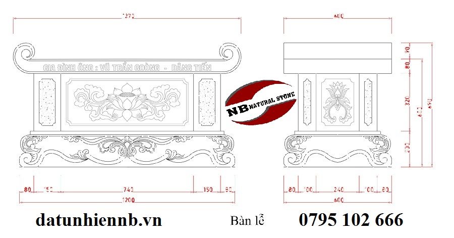 Bàn lễ đẹp bằng đá là hạng mục không thể thiếu trong các công trình xây dựng tâm linh, việc thiết kế bàn lễ đẹp là hết sức cần thiết để đảm bảo các tỷ lệ và hình hài được hiểu đúng và đủ, các hoa văn được mô tả chính xác với tỷ lệ và kích thước hợp lý. Có nhiều kiểu mẫu bàn lễ với các kích thước phong thủy đa dạng.