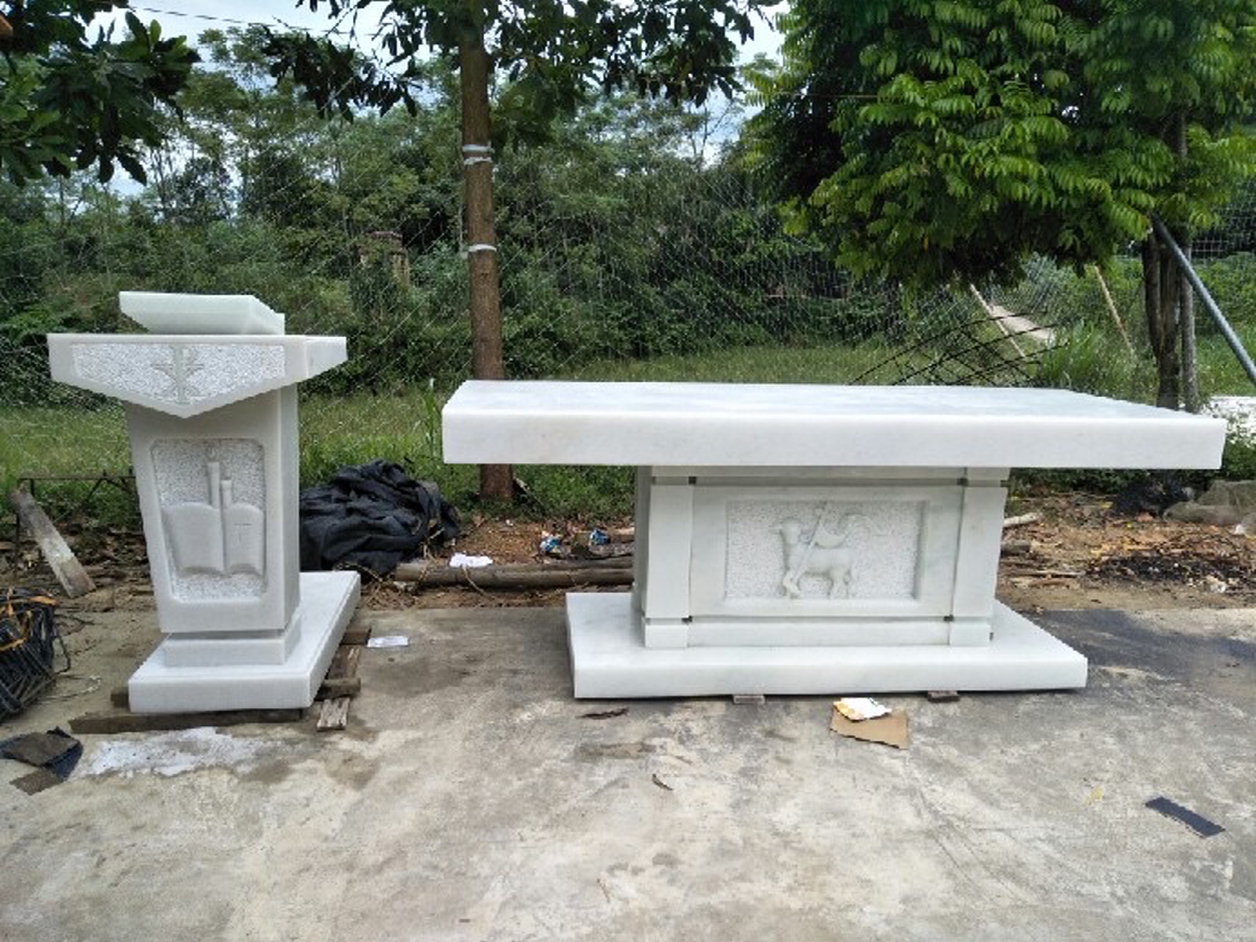 Bàn lễ công giáo hay còn gọi là bàn dâng lễ trong nhà thờ cùng với bục giảng kinh thánh là những hạng mục không thể thiếu trong các nhà thờ công giáo. Được làm 100% từ đá tự nhiên liền khối, các đường nét tinh xảo cùng các họa tiết ý nghĩa tượng trưng của công giáo. Xin giới thiệu bộ sưu tập của DatunhienNB chúng tôi.
