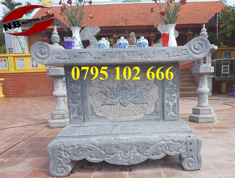 Bàn lễ bằng đá là danh mục đồ thờ xuất hiện khá phổ biến trong các công trình kiến trúc tâm linh như đình chùa, nhà thờ họ, nghĩa trang dòng họ. Đước làm bằng đá tự nhiên 100%, bàn có nhiều kiểu dáng từ liền khối đến ghép từng khối. Hoa văn bàn lễ phong phú, trạm khắc tinh xảo, sắc nét, hài hòa và mang ý nghĩa tâm linh.