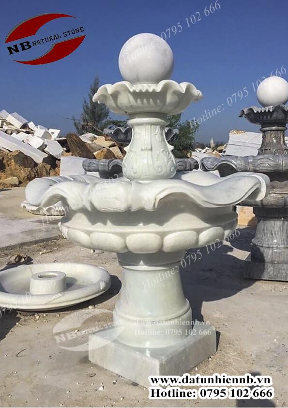 Đài phun nước bằng đá trắng cẩm thạch có nguồn gốc khai thác tại mỏ đá trắng tự nhiên tại Nghệ An được nhiều người yêu thích nhất. Đây là mỏ đá có chất lượng đá rất tốt, đá nạc, thớ dai và không bị đổi mầu. Đá dễ chế tác nên có thể tạo ra được các sản phẩm tinh xảo, có hồn và thần thái, các sản phẩm đá mỹ nghệ cao cấp cũng thường sử dụng đá này làm nguyên liệu.