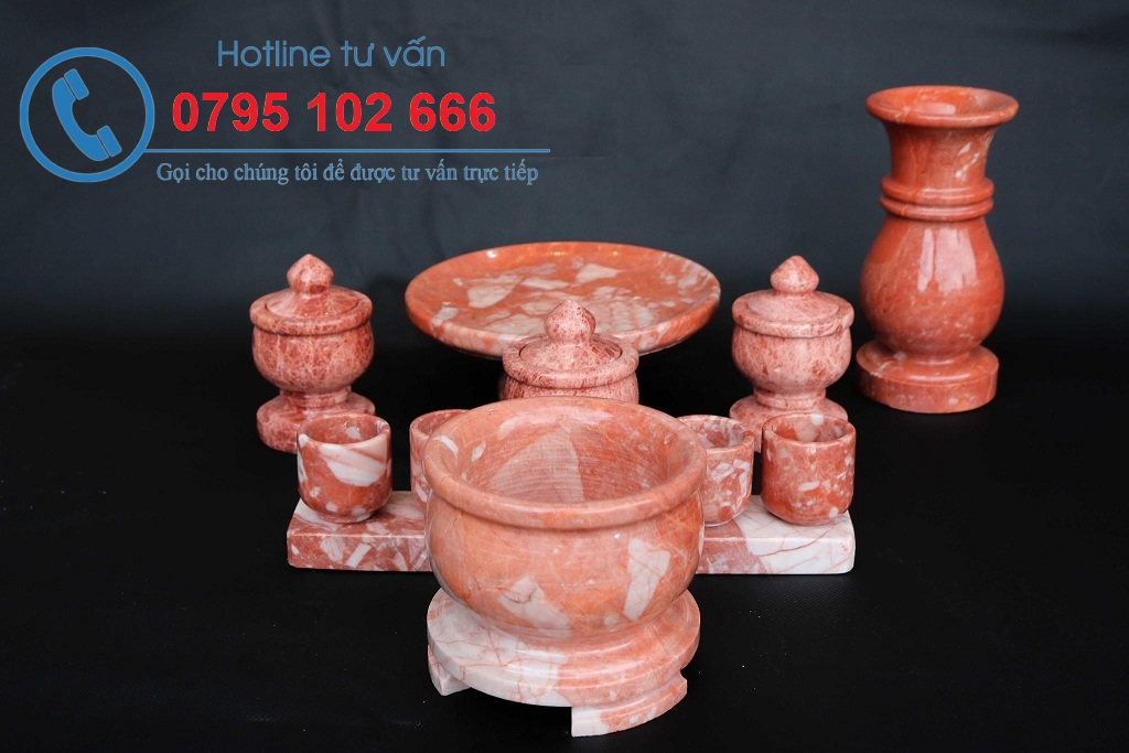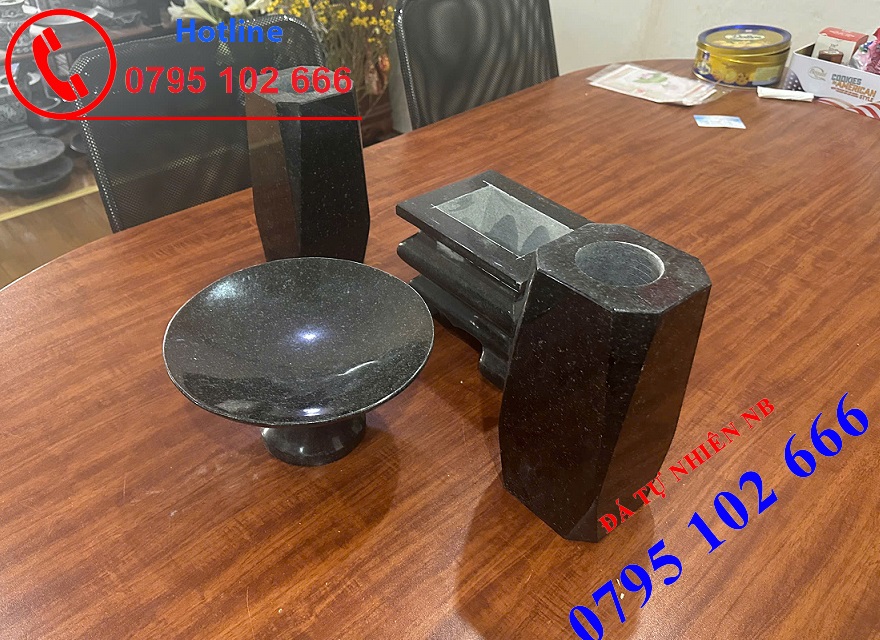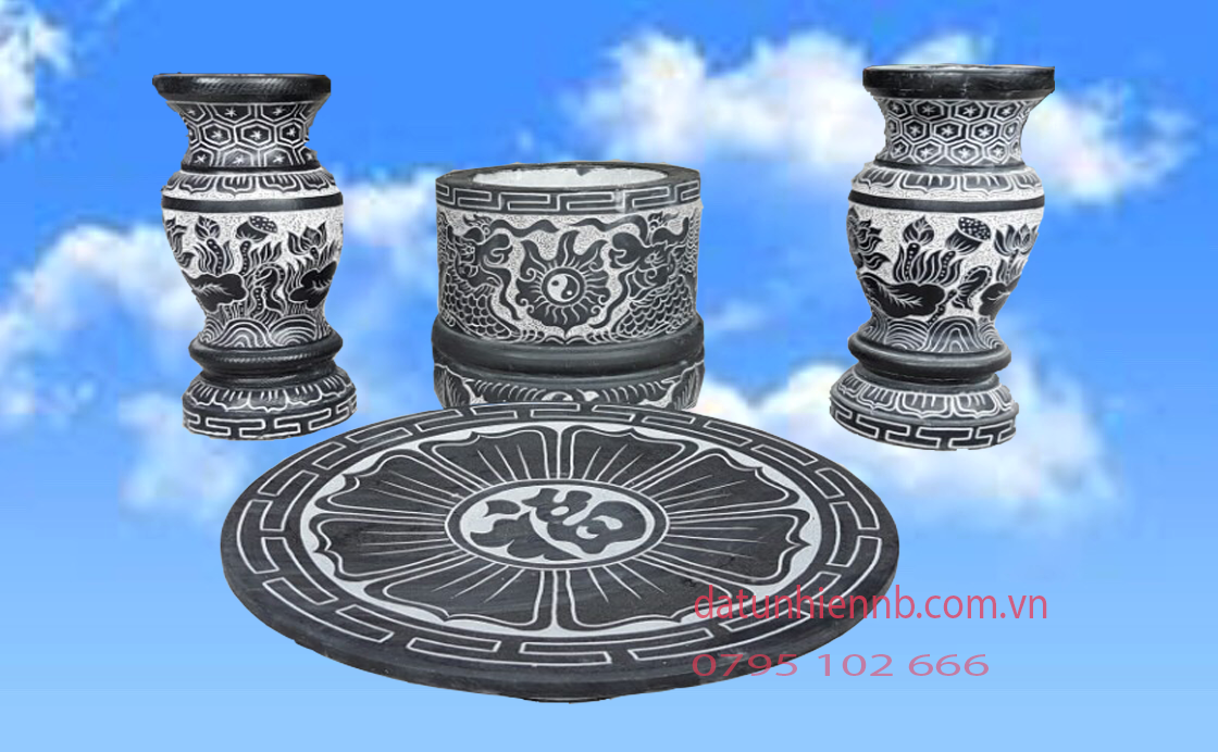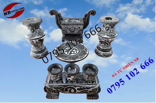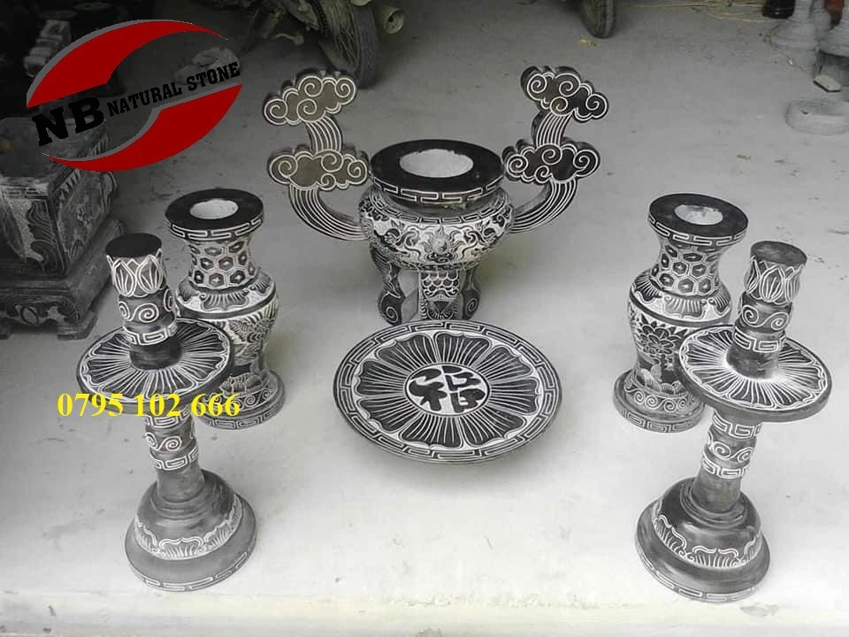 Một bộ đồ thờ bằng đá đầy đủ sẽ phụ thuộc vào diện tích thờ, trong nhà hay ngoài mộ nhưng chủ yếu sẽ bao gồm 3 bộ chính.