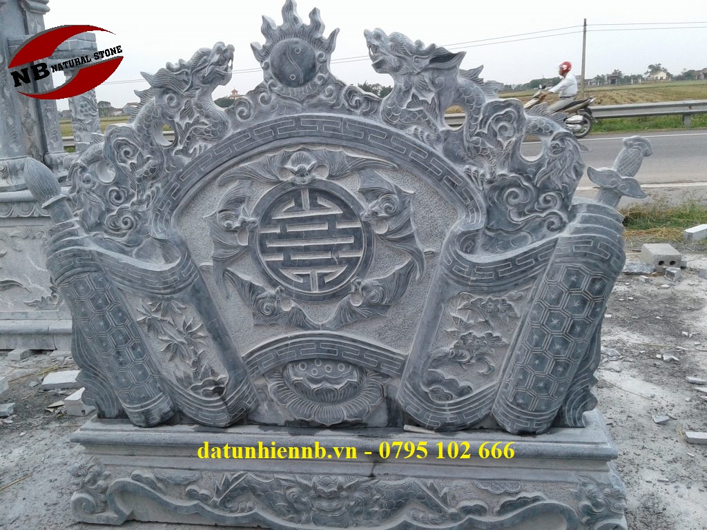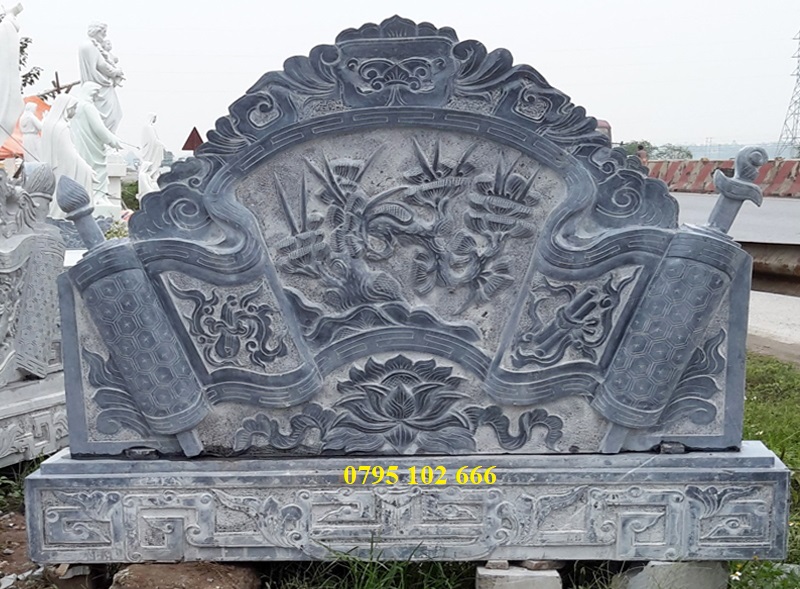 Cuốn thư đá hay còn gọi là bình phong là một công trình kiến trúc tâm linh thường xuất hiện trước cổng lăng mộ hay nhà thờ, đình chùa. Có nhiều mẫu cuốn thư đá khác nhau, được làm từ đá tự nhiên 100% liền khối, trạm khắc hoa văn tinh xảo với các chữ, câu từ mang ý nghĩa phong thủy tâm linh. Hãy tham khảo mẫu cuốn thư đá