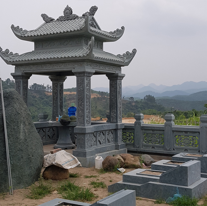 Lầu đá có thể chứa mộ hoặc chứa bàn lễ, đôi khi chỉ là nơi nghỉ chân sắp lễ trước khi vào ban thờ chính. Các thiết kế khá đa dạng như tròn, vuông, chữ nhật, lục giác ... có hàng rào hoặc không, một tầng mái hoặc nhiều hơn. Các trụ cũng khá phong phú có thể trụ vuông, tròn với hoa văn hoặc câu đối.... tốt nhất quý khách nên mời các đơn vị có kinh nghiệm tư vấn để các chi tiết khớp với tổng thể công trình về cả kết cấu và phong thủy.