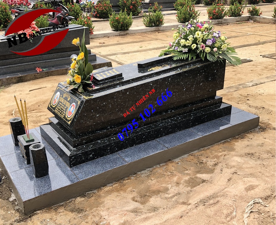 1. Mộ đá 3 cấp - Mộ đá Granite đen Bình định.