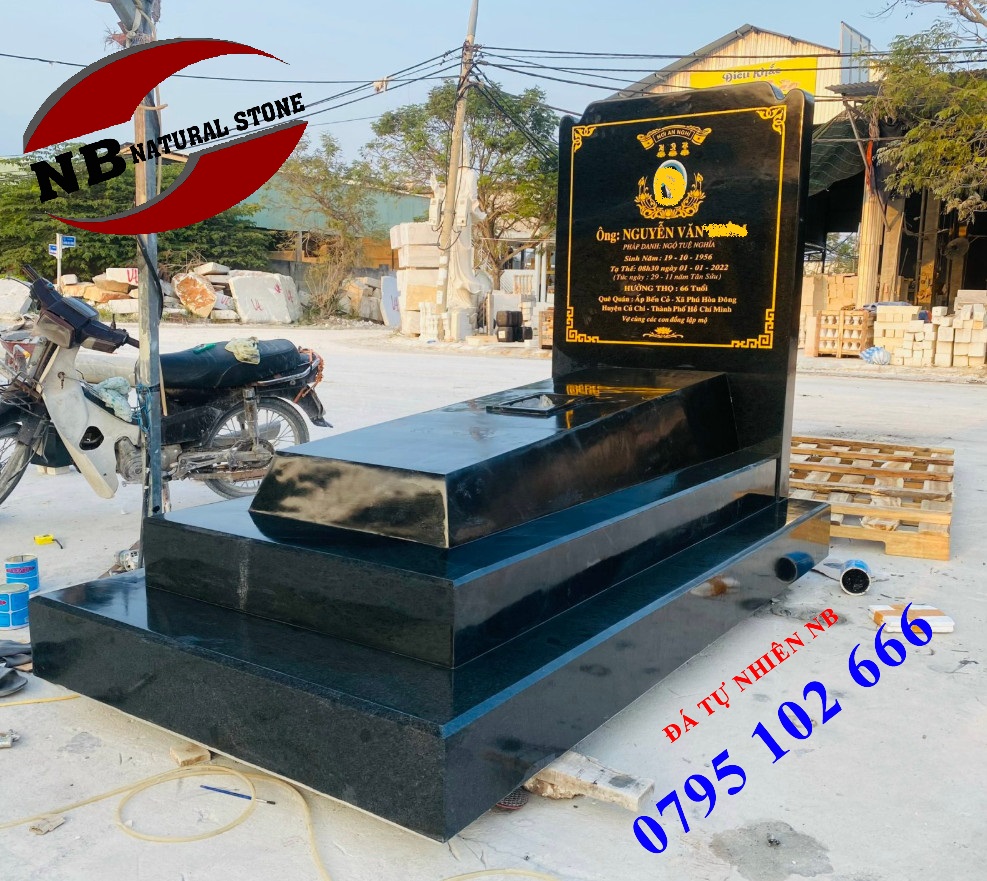 (Mộ đá 3 cấp - Mộ đá Granite đen Ha san Ấn độ MĐ 08)