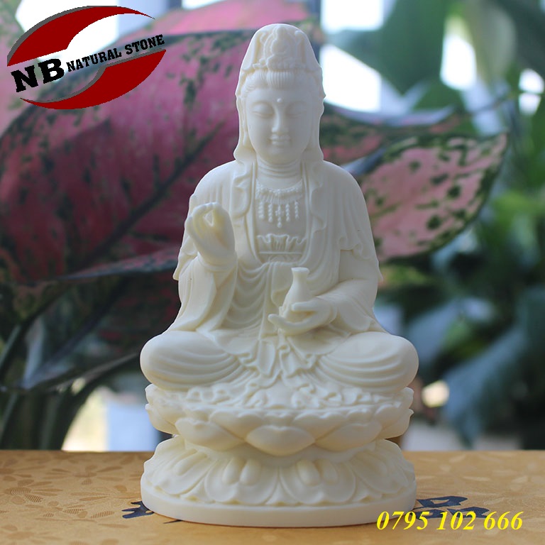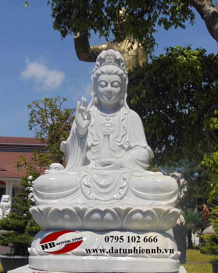 +100 mẫu tượng quan âm bồ tát ngồi đài sen bằng đá trắng cẩm thạch