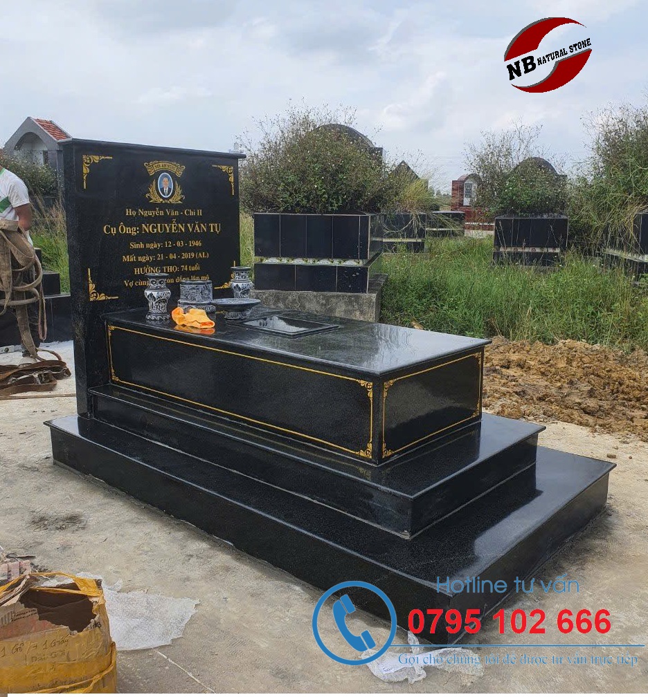 ► Mộ đá hoa cương mầu đen Bình định/ mộ đá granite mầu đen Bình định