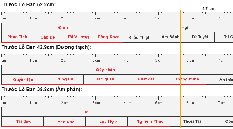 Thước lỗ ban gồm 3 bộ áp dụng cho xây nhà, nội thất và tâm linh. Trong xây dựng mộ đá chúng ta quan tâm tới thước thứ ba, cụ thể.