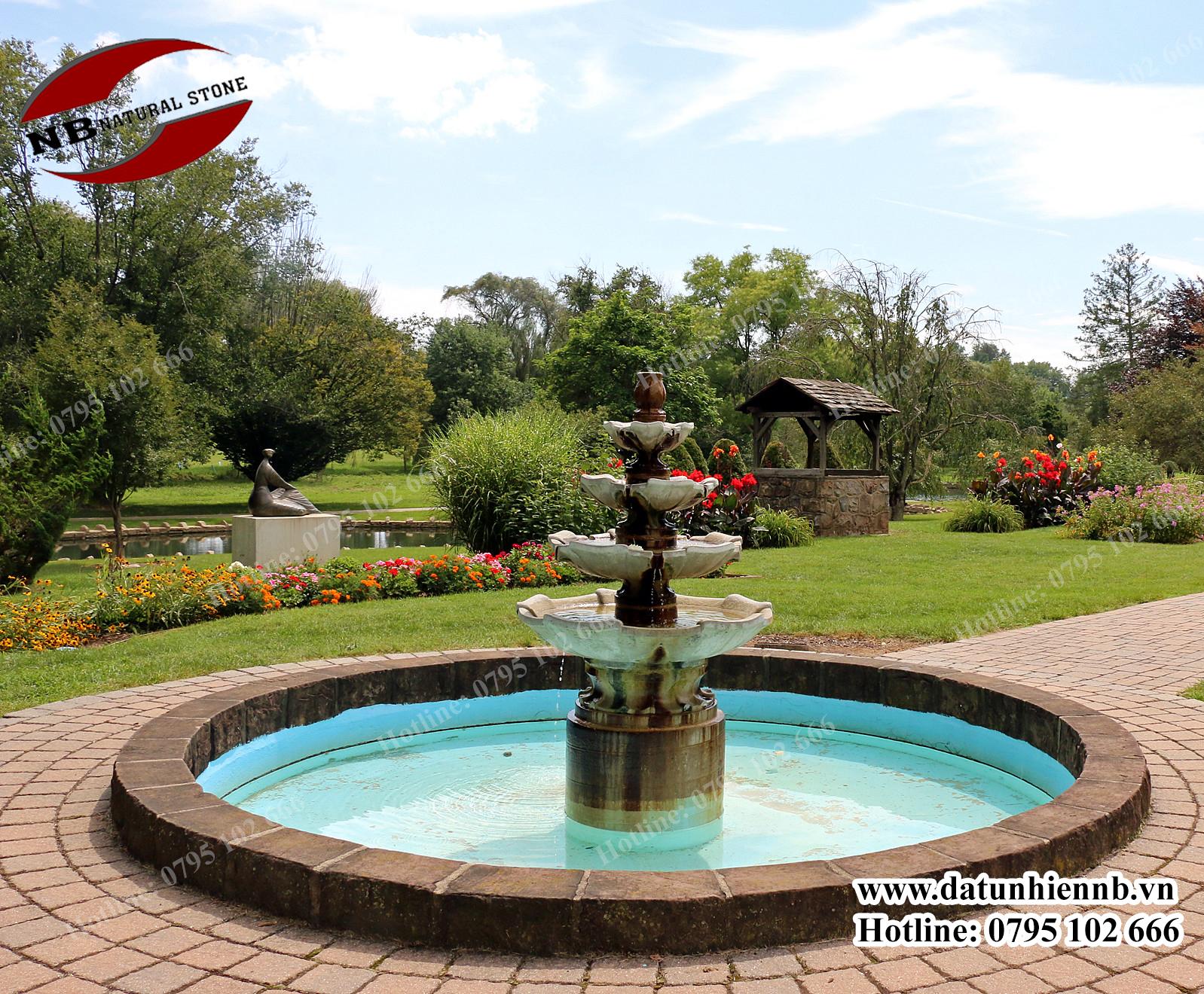 - Theo chất liệu: Đài phun nước bằng đá, bê tông, gạch, tre...