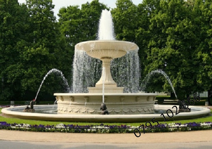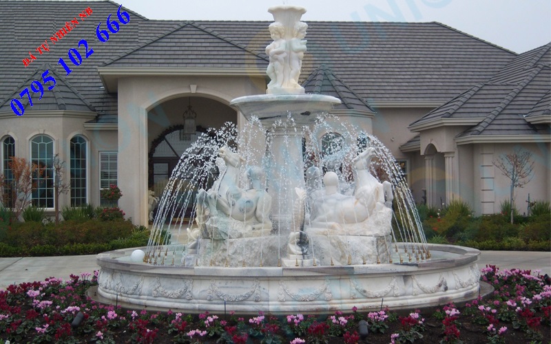 Hệ thống đài phun nước được làm bằng đá liền khối, dưới bàn tay của các nghệ nhân những khối đá tự nhiên được đục khoét chế tác thành các hình thù dưới dạng các đĩa tròn với họa tiết hoa văn tinh xảo. Trên các đĩa ấy, có thể trang trí bằng các bức tượng con giống, cô gái, cậu bé, thiên thần... rất sinh động.