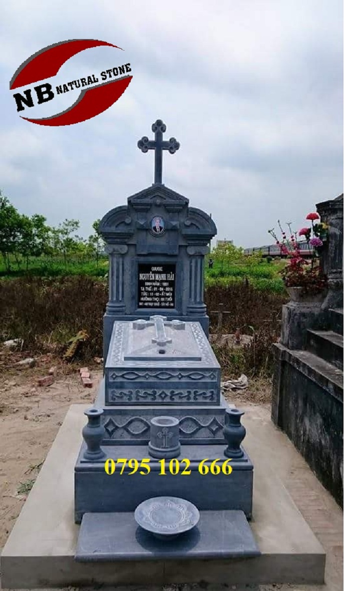 (Mộ công giáo bằng đá - mộ công giáo đá xanh đen MĐCG15)