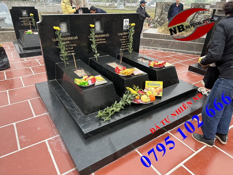 4. Các kiểu dáng mộ đá đen - mẫu mộ đôi, mẫu mộ ba