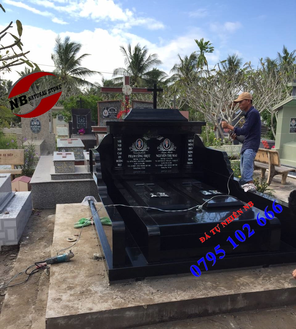 Mẫu mộ đá đen là mầu sắc chủ đạo trong thiết kế mộ đá hiện nay. Đây là dòng mộ đá granite, mộ đá hoa cương có độ bền cao, nguồn gốc xuất xứ chủ yếu từ Ấn độ hoặc khai thác tại các mỏ đá tự nhiên trong nước. Kiểu dáng mộ này với thiết kế khỏe khoắn hiện đại, tạo nên sự sang trọng, uy nghiêm và bền vững.