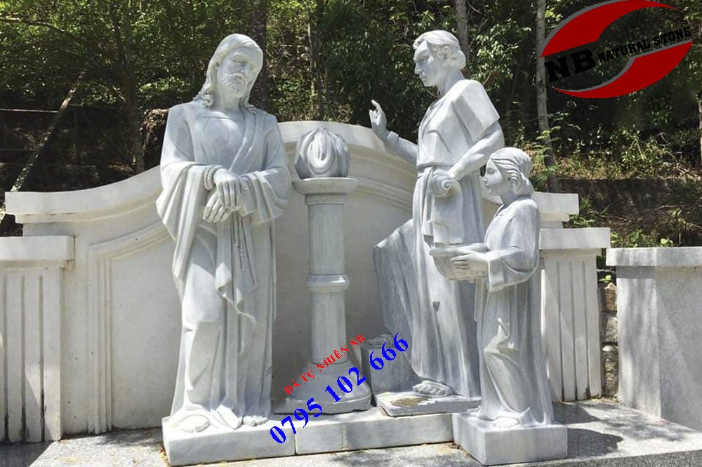 Tượng 14 chặng đường thánh giá được làm bằng chất liệu đá cẩm thạch nguyên khối. Mỗi loại đá có một vẻ đẹp và tính chất đặc thù riêng. Theo phong thuỷ, đá càng quý hiếm thì càng có tác dụng về mặt tinh thần, vận mệnh,… Không chỉ làm sản phẩm trưng bày mà mỗi tượng đá đều có ý nghĩa phong thủy, ý nghĩa tâm linh riêng. Mỗi ý nghĩa của mỗi tượng đá đều không giống nhau tùy vào màu sắc, kích cỡ và hình dạng. Các tượng hay vật phẩm bằng đá thường sẽ có ý nghĩa phong thủy tốt nhất trong tất cả các chất liệu. Sản phẩm làm từ nguyên vật liệu tự nhiên sẽ tồn tại lâu và có nghĩa lâu dài.