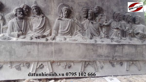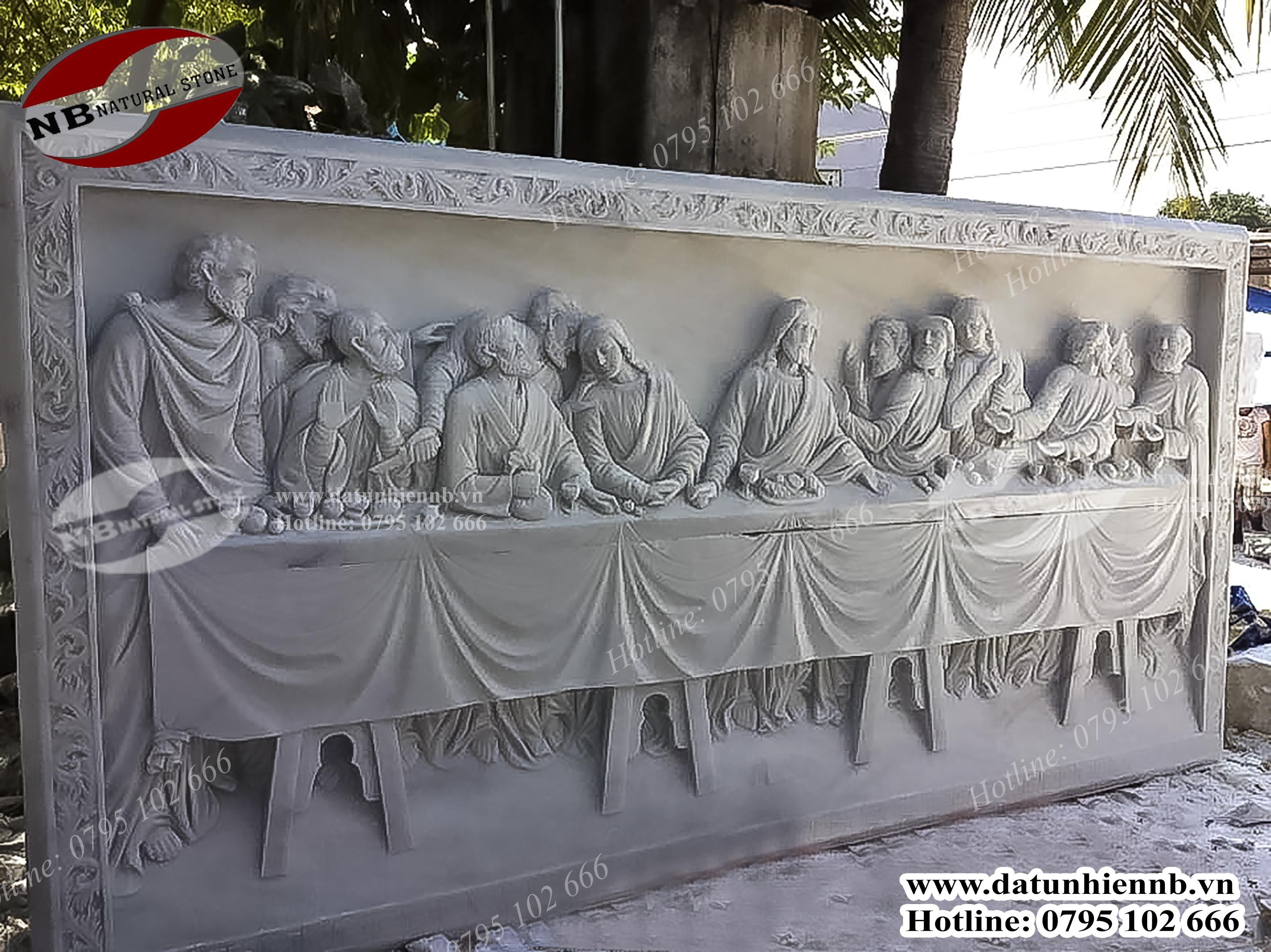 Phù điêu đá tranh tiệc ly là mẫu phù điêu được biết đến với ý nghĩa là bữa tiệc cuối cùng của Chúa Giêsu cùng 12 môn đệ. Có rất nhiều chất liệu khác nhau nhưng tranh đá là lựa chọn nhiều nhất và bền vững hơn cả. Tranh được tạc trên đá cẩm thạch màu trắng nguyên khối rất tỉ mỉ và sắc nét, mô tả đúng tâm trạng của Chúa.