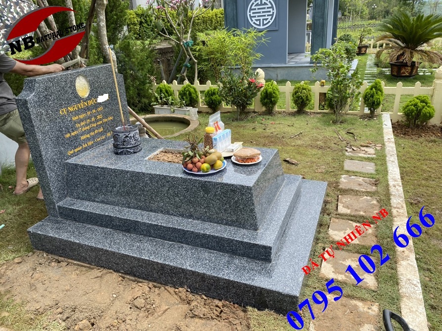 (Mộ đá granite đen Bình định - Hoàn thiện lắp đặt MĐ 04)