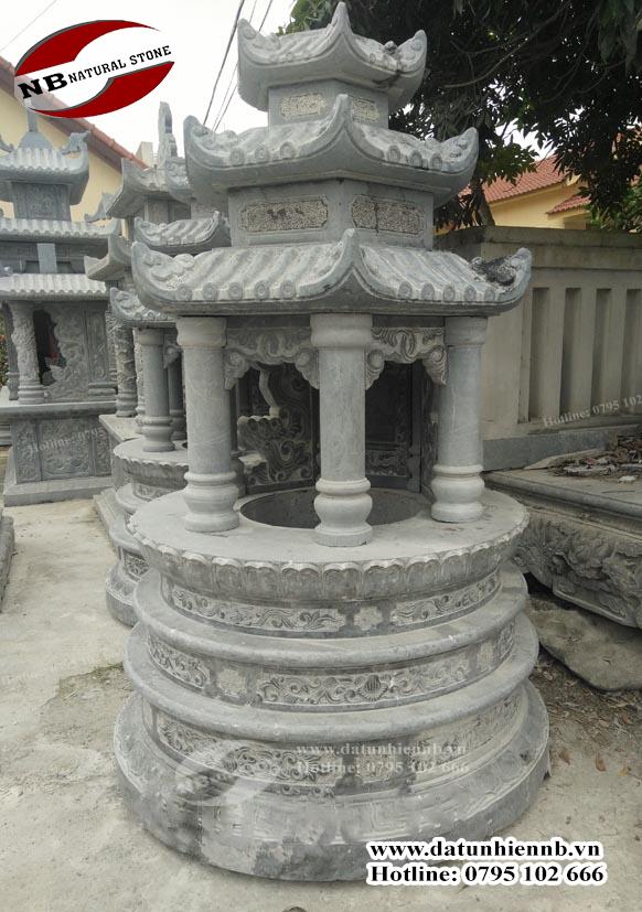 Mộ đá tròn là loại mộ đơn giản, là các tầng đá xếp chồng lên nhau từ 2-5 lớp tạo độ cao và sang trọng tuy nhiên trong phong thủy thì đây là một trong những loại mộ phát huy tốt nhất về phong thủy và có ý nghĩa lớn về tâm linh. Đối với các loại mộ thì mộ tròn là ngôi mộ nhận được nhiều sinh khí hơn cả vì khi một dòng khí tác động vào ngôi mộ đá thì phần tà khí sẽ tách ra lao xuống dưới. Còn sinh khí thì vừa chạy viền quanh đường cong thành mộ, vừa đổ vào mặt trên của mộ để thẩm thấu vào mộ theo mọi hướng.