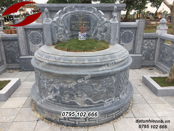 Mộ tròn đá luôn là phần nổi bật nhất trong quần thể mộ đá nên cũng dễ đưa mọi chất liệu đá vào sử dụng miễn sao hài hòa với toàn thể kiến trúc là được. Một số loại đá thường chọn để làm mộ như: đá xanh Thanh Hóa là phổ biến và thích hợp nhất (đá xanh đen, xanh rêu cao cấp), đá trắng và đá vàng Quỳ Hợp- Nghệ An. Các mẫu mộ tròn do Công ty CP Đá Tự nhiên NB cung cấp luôn đạt chất lượng cao về khít trong mạch đá, hoa văn chạm khắc tinh xảo, đá sử dụng trong xây mộ là loại đá xanh tự nhiên. Với đôi bàn tay tài hoa của những người thợ đá làng Ninh Vân luông mang đến cho quý khách hàng những mẫu mộ đá tròn chuẩn phong thủy và đẹp về thẩm mỹ.