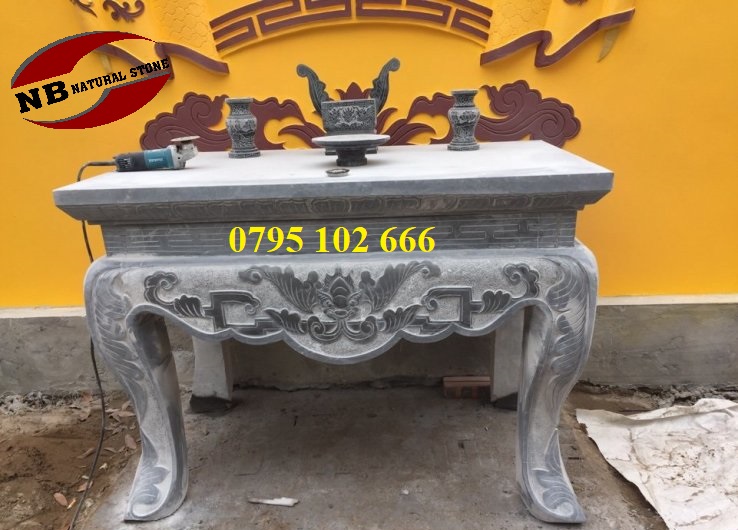Bàn lễ đá. Đặt ngay cạnh phía trước lư hương, là nơi đặt lễ vật cúng thần linh. Bàn lễ có nhiều kiểu dáng và chất liệu rất đẹp.