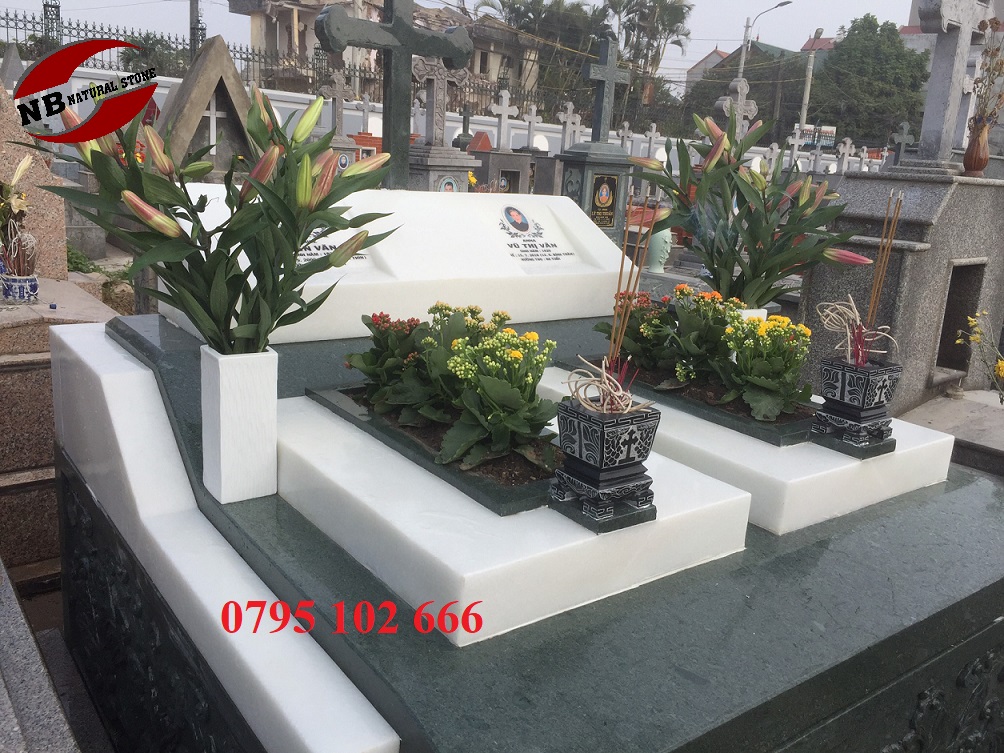 Lăng mộ đá xanh rêu. Dòng đá này chủ yếu khai thác tại hai huyện Hà trung và Ngọc Lặc tỉnh Thanh Hóa. Đá dai, cứng gần như dòng mộ đá Granite, mầu xanh rất mát dịu và khá dễ chế tác. Dòng đá này rất bền vững nên có giá thành cao hơn dòng đá xanh đen đôi chút.
