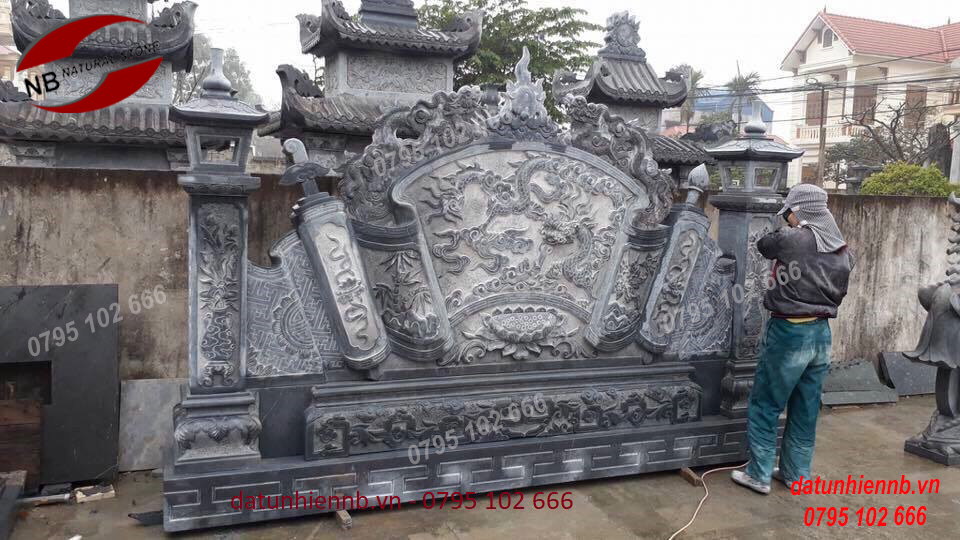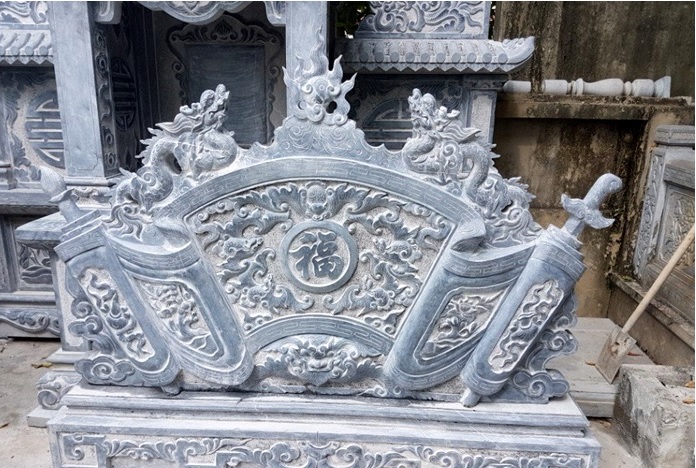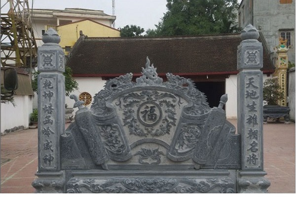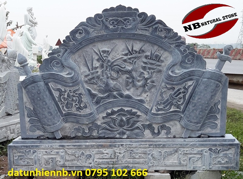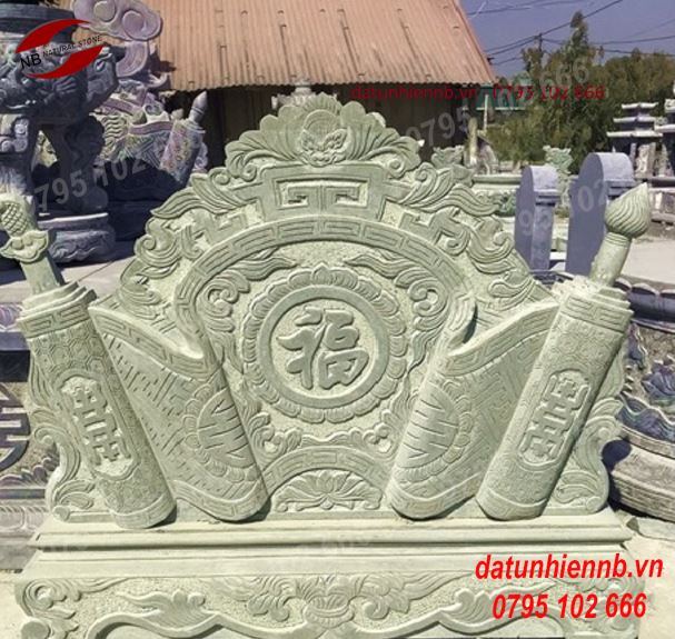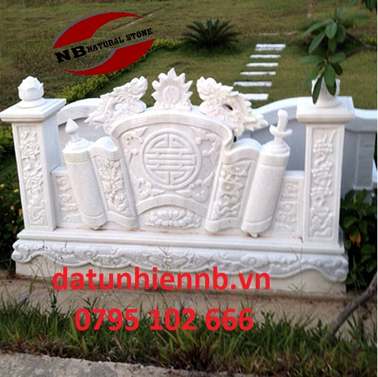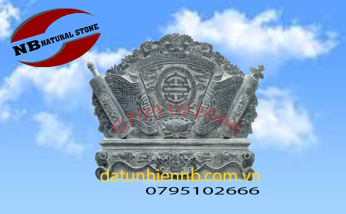 Cuốn thư đá là gì/ bình phong đá là gì? Cuốn thư đá là hạng mục bằng đá thường nằm ngay chính giữa cửa ra vào của các công trình kiến trúc tâm linh như lăng mộ, nhà thờ, đình chùa, từ đường.... với mong muốn che chắn và chấn tà khí, hung khí. Cuốn thư được làm bằng đá đặc nguyên khối rất chắc chắn với các họa tiết hoa văn đa dạng phong phú, kích thước cũng to nhỏ khác nhau với tỷ lệ ngang và cao cân đối hài hòa.