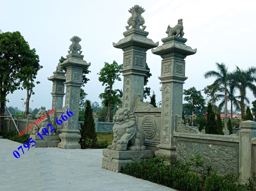 Trụ cổng lăng mộ đá, trụ cổng nhà thờ họ bằng đá đẹp đang là xu hướng phổ biến trong các công trình kiến trúc văn hóa, tâm linh bởi tính thẩm mỹ, bền vững và yếu tố phong thủy. Có khá nhiều kích thước, mẫu mã và chất liệu đá tự nhiên để làm các bộ trụ cổng này trong đó phổ biến nhất là đá xanh đen hoặc xanh rêu Thanh Hóa.