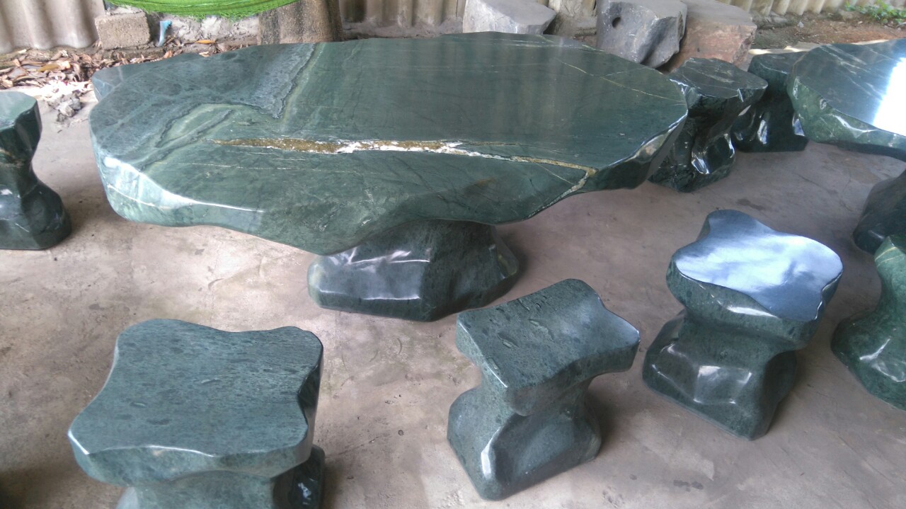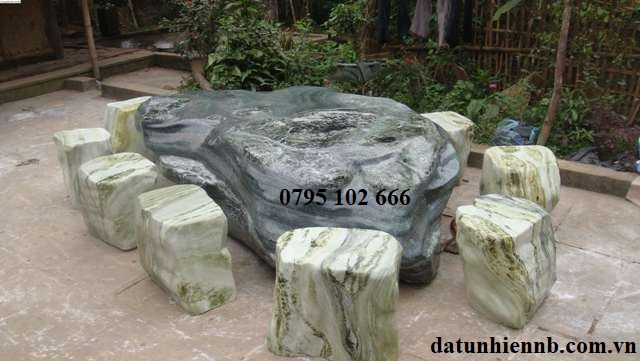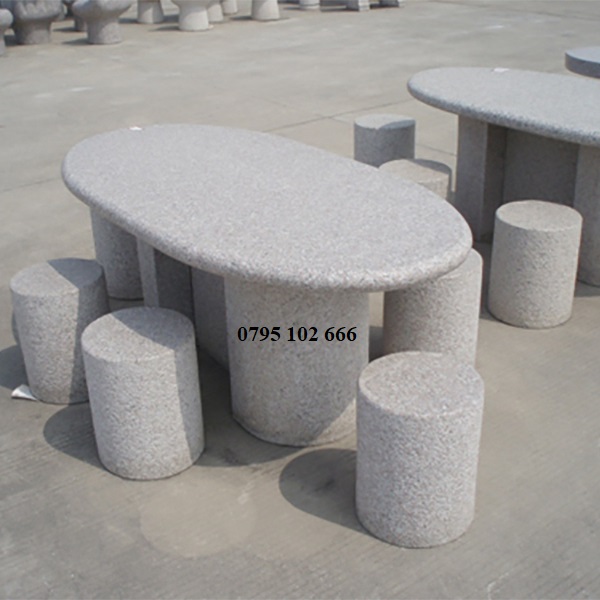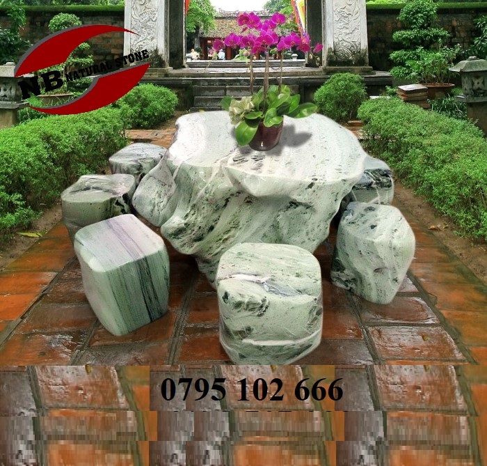 Bàn ghế đá sân vườn, bàn ghế đá ngoài trời là những sản phẩm bán rất chạy trong mấy năm gần đây. Có khá nhiều mẫu mã và kiểu dáng từ tự nhiên đến tạo dáng nhân tạo, 100% sản phẩm của chúng tôi là đá tự nhiên nguyên khối, có độ bền vĩnh cửu và mầu sắc không bị phai. Một bộ thường gồm một bàn và 6 đến 8 đôn ghế.