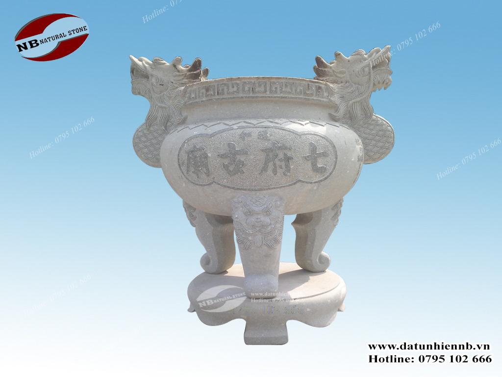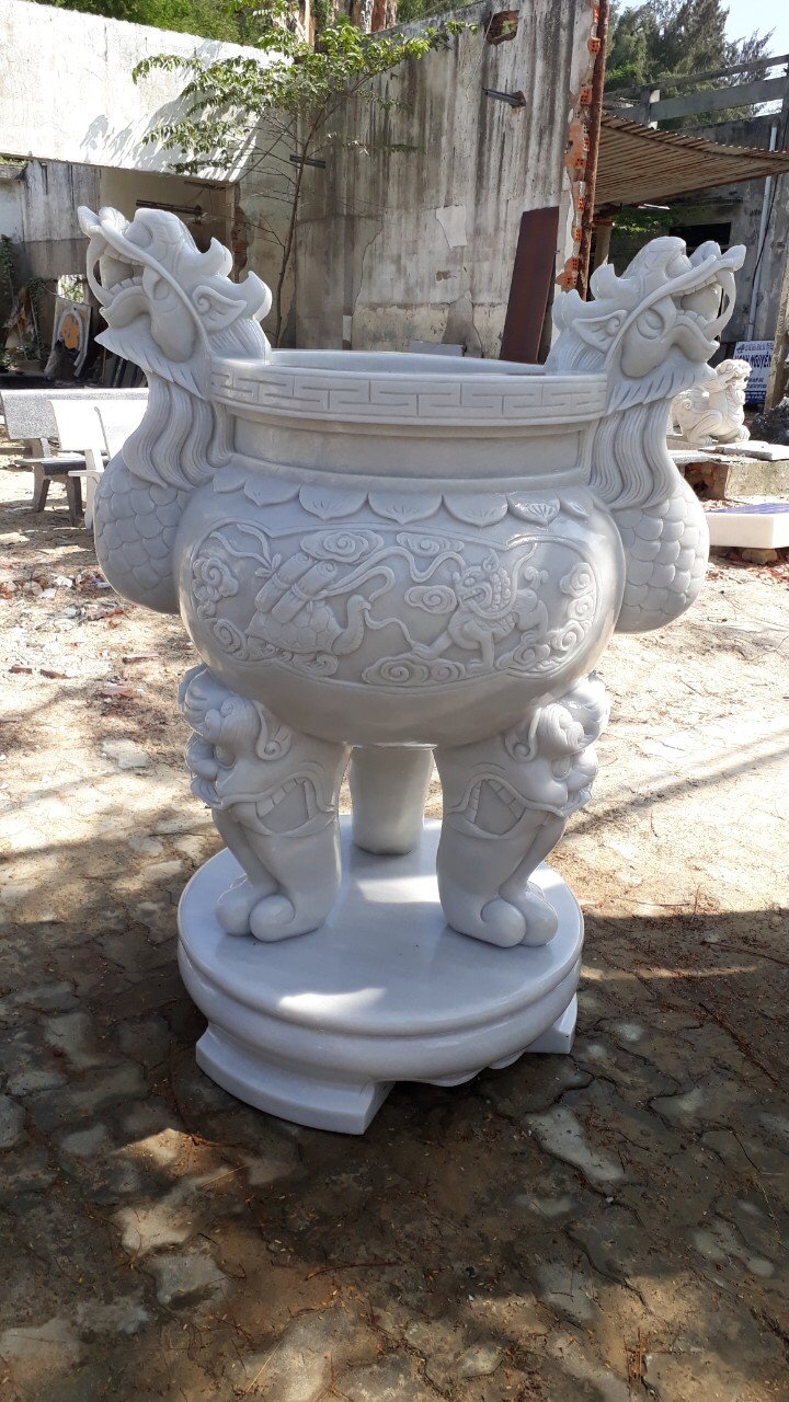 Lư hương bằng đá trắng cẩm thạch là đồ thờ không thể thiếu trong các khu thờ tự. Lư có nhiều kích thước với đặc trưng là mầu đá trắng tinh khiết, kết cấu liền khối bền vững và rất chắc chắn. Có nhiều loại như lư vuông, lư tròn, lư tai mây, lư tai rồng... lư thường đi cùng bộ với bàn lễ đá, đèn đá, hạc đá, chiếu rồng đá