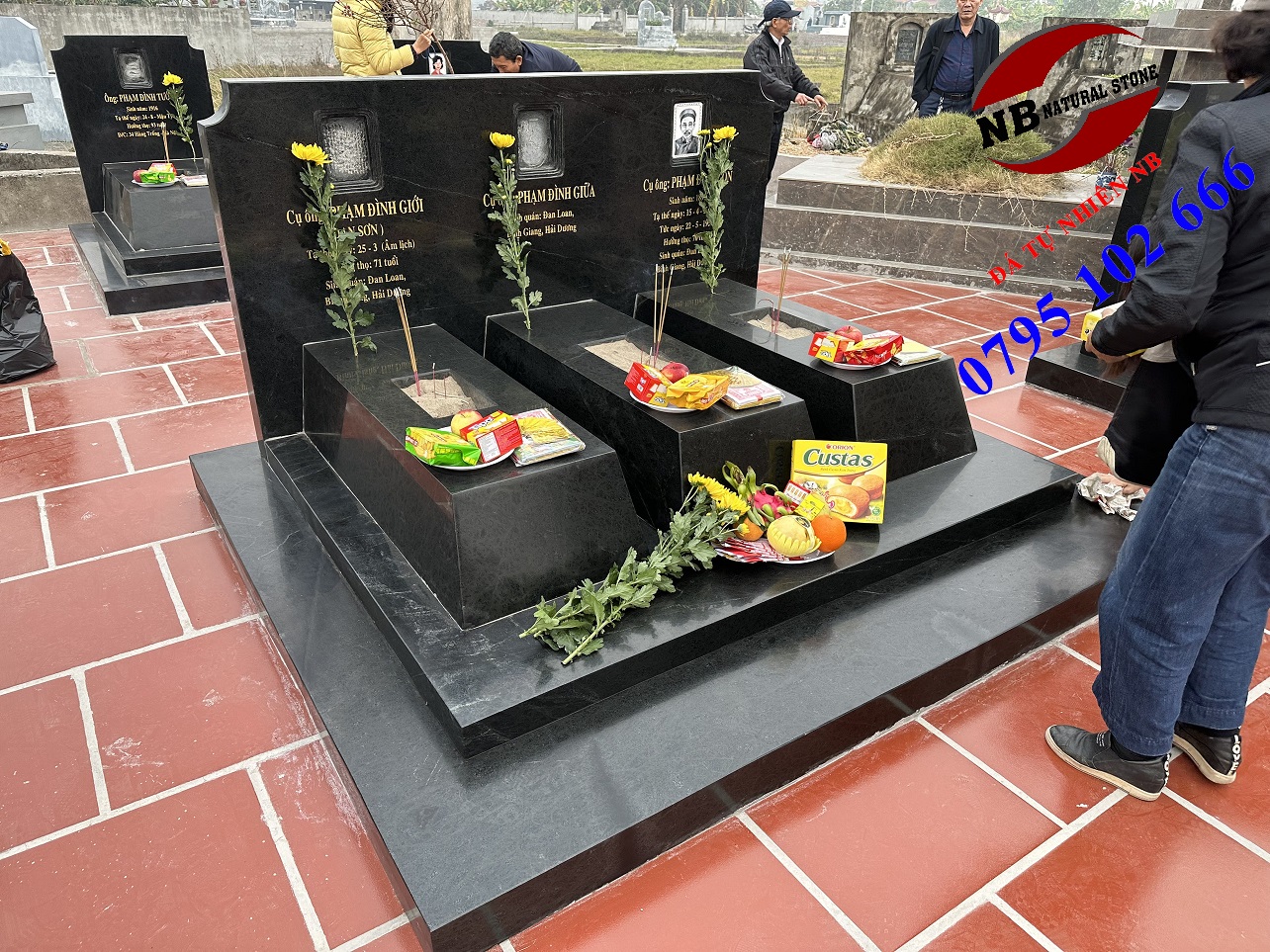 Mộ đá granite đen Bình định là dòng mộ đá nổi tiếng xưa nay vì độ bền và độ bóng đẹp. Trong những ngày cuối năm 2022 chúng tôi đã tư vấn, thiết kế và sản xuất lắp đặt hoàn thiện 9 ngôi mộ đá liền khối tại Hải dương được khách hàng và người dân xung quanh yêu thích, làm theo.
