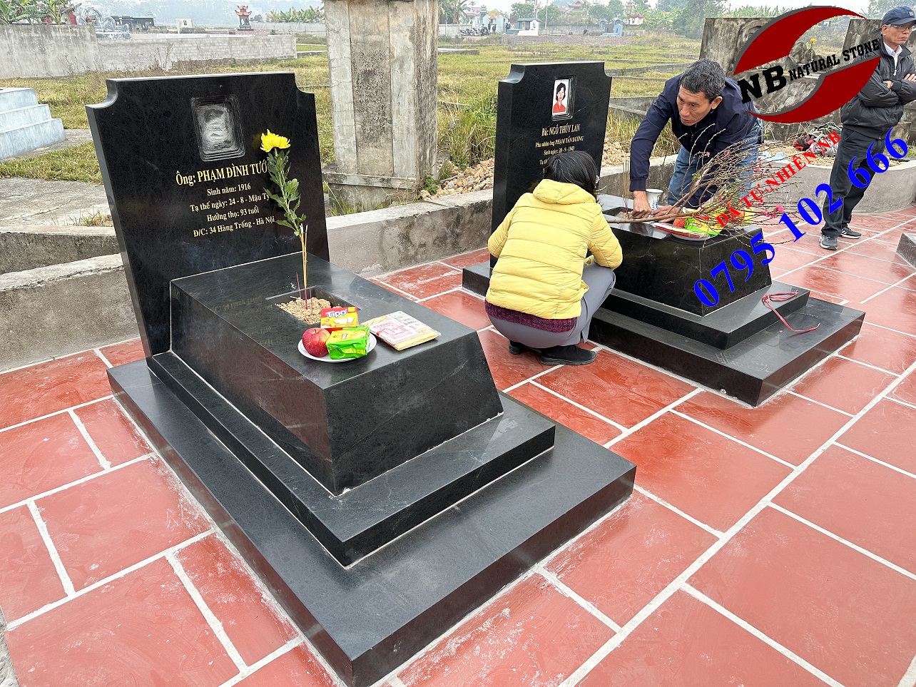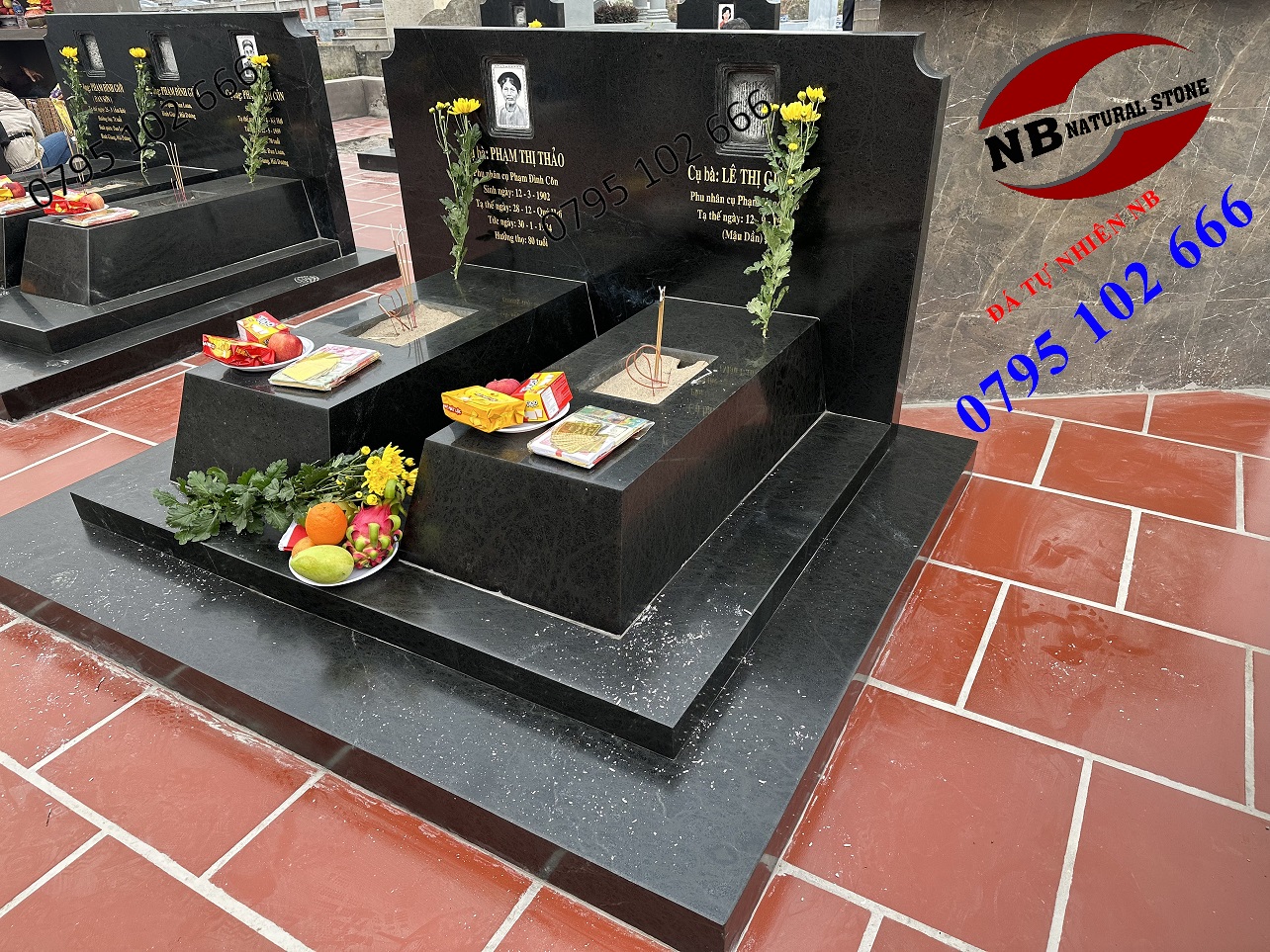 (Mộ đá granite đen Bình định - thiết kế mộ đôi)