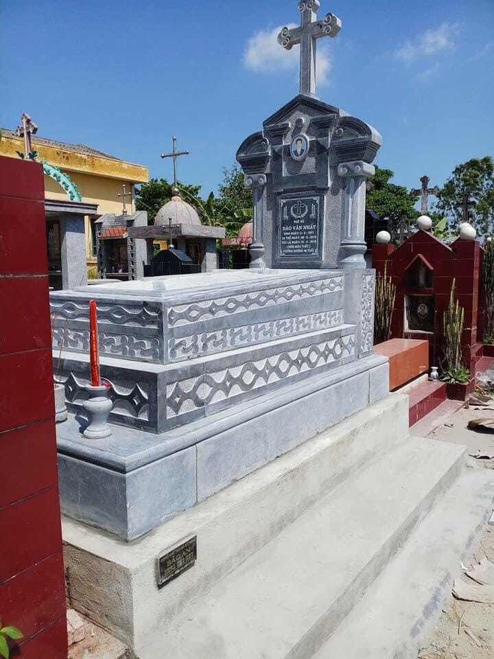 Cấu tạo của mộ đá công giáo như nào? Cũng giống như các mộ đá khác, mộ đá công giáo được chế tác từ các khối đá tự nhiên chắc chắn và ghép lại với nhau theo hình dáng yêu cầu của khách hàng, các mảng ghép liên kết với nhau bằng mộng đá. Về cơ bản, mộ đá công giáo có cấu tạo gồm ba phần đó là phần đế mộ, phần thân mộ và phần mái mộ (với kiểu dáng mộ có mái). Ngoài cấu tạo cơ bản nói trên, mộ đá công giáo không thể thiếu được cây thánh giá đẹp, hài hòa với tổng thể mộ (đây là điều rất quan trọng). Trên bề mặt mộ có thể trạm khắc thánh giá (nếu chưa có), sách kinh thánh, đôi chim bồ câu, thiên thần.... tùy theo kiểu dáng mà thiết kế các chi tiết đó cho hài hòa cân đối.