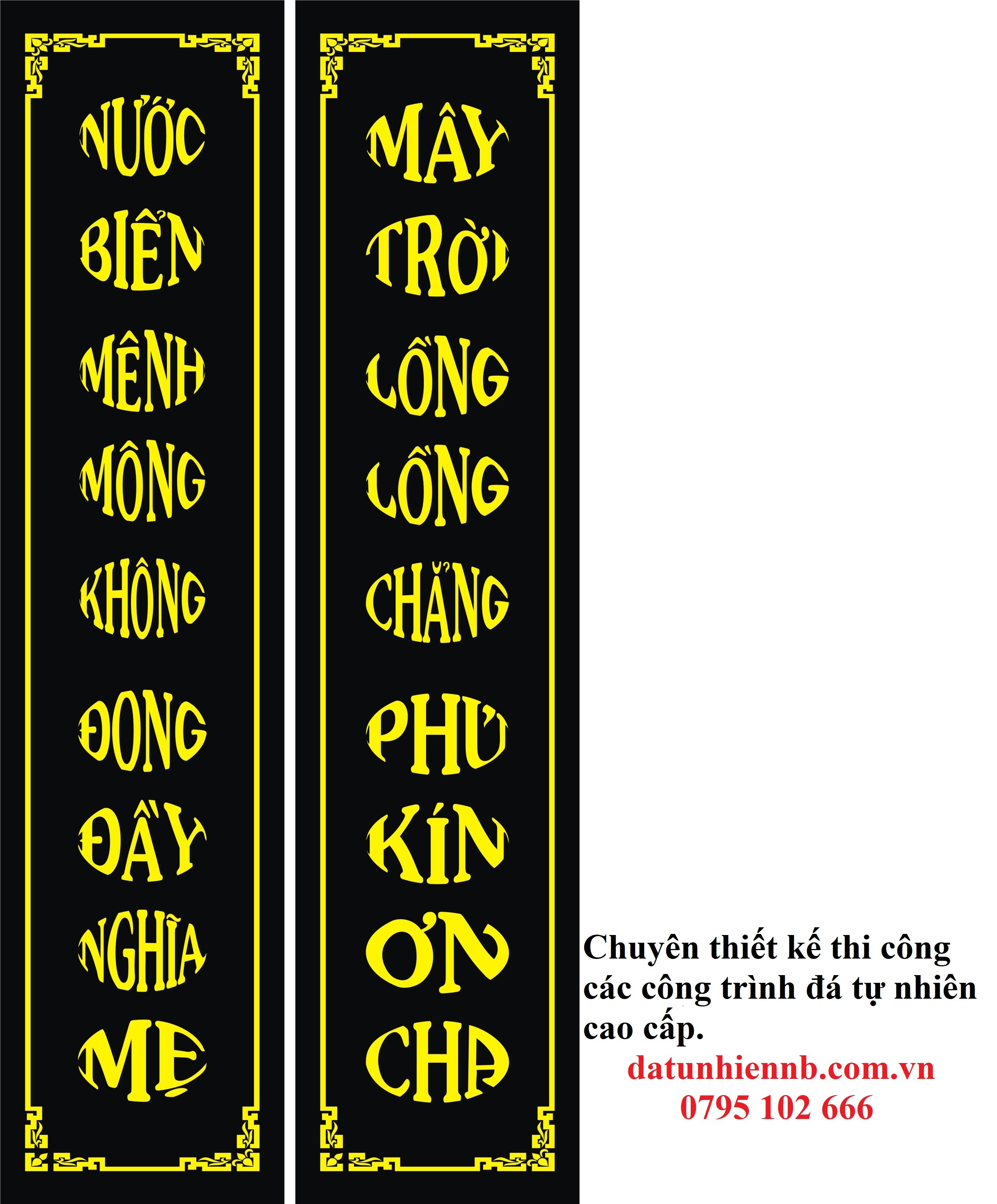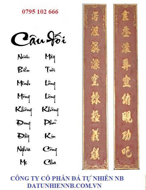 - Câu đối trên bia mộ đá: Một số mẫu mộ đá, các công trình tâm linh thì câu đối còn được khắc ngay tại bia mộ đá, tạo nên được sự uy nghi, trang trọng cho vị trí khắc câu đối trên lăng mộ mang ý nghĩa tâm linh sâu sắc.