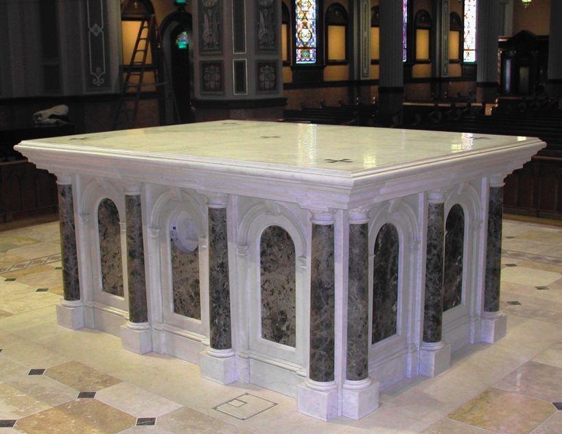Bàn lễ công giáo/ bục giảng kinh thánh là hạng mục không thể thiếu trong các nhà thờ đạo Thiên chúa. Được làm từ đá khối tự nhiên, bàn lễ và bục giảng có độ bóng đẹp, có độ bền vĩnh cửu. Họa tiết hoa văn trên bàn lễ thường là tranh tiệc ly, chùm nho, thiên thần, sách kinh hoặc thánh giá. Kích thước bàn thường lớn rất uy nghiêm và sang trọng.