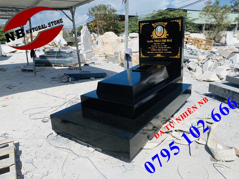 Mộ đá đẹp- Mộ đá Granite đen kim sa- MĐ 10