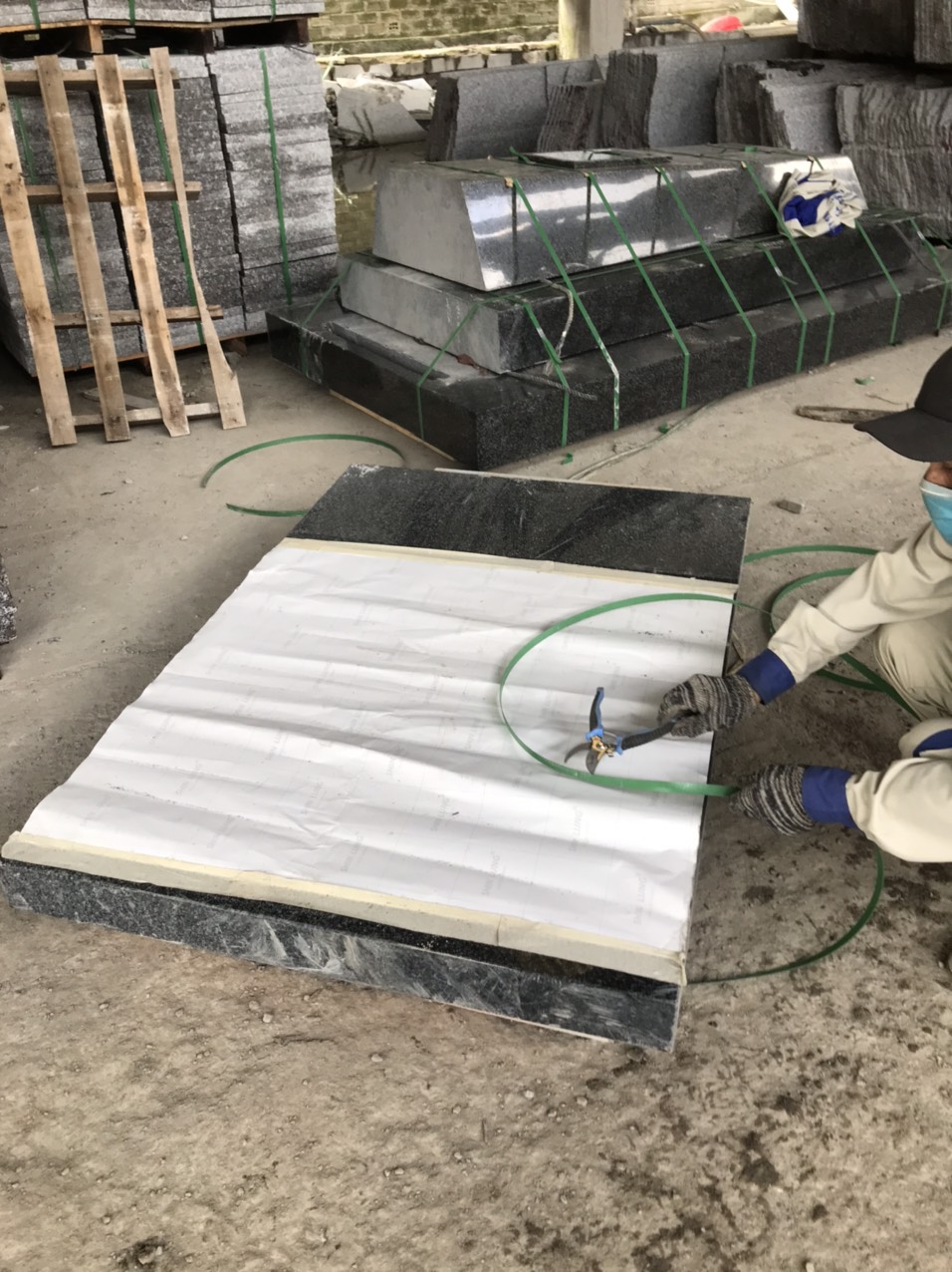 Mộ đá đen nguyên khối là gì? Khác với xây mộ gạch hay mộ ốp đá, mộ đá đen nguyên khối là các tảng đá khối được xẻ ra theo thiết kế rồi ghép lại với nhau thành ngôi mộ. Như vậy, từ mặt đất trở lên hoàn toàn không dùng gạch hay xi măng để làm mộ mà toàn là đá khối. (xem hình minh họa sản phẩm hoàn thiện tại xưởng). Quy trình sẽ là Sẻ đá ==> chế tác theo mẫu ==> đóng kiện ==> vận chuyển, lắp đặt.