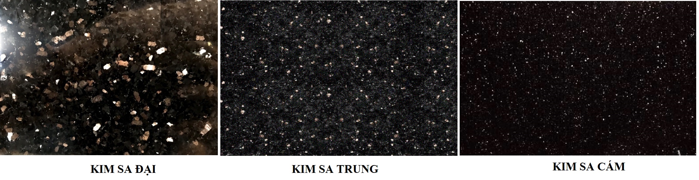 ► Về chủng loại: Đá kim sa hiện nay có 3 loại (kim sa đại, kim sa trung, kim sa cám) nhưng chủ yếu trên thị trường hiện nay chỉ còn kim sa trung hoặc kim sa cám, nguồn đá kim sa đại gần như đã cạn kiệt và hiếm có. Chất liệu cả ba loại này đều khá ổn định và rất chắc chắn.