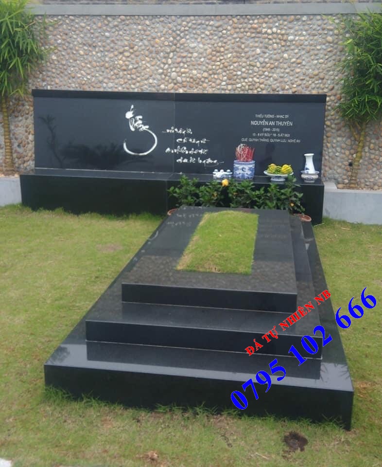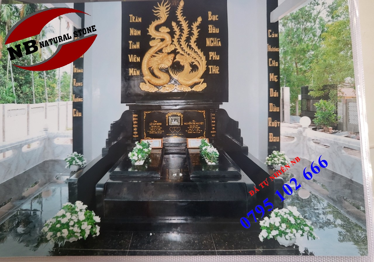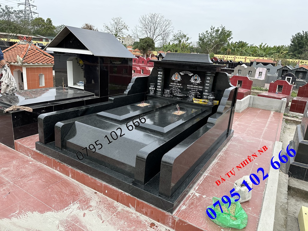 Mẫu mộ đôi bằng đá xanh đen.
