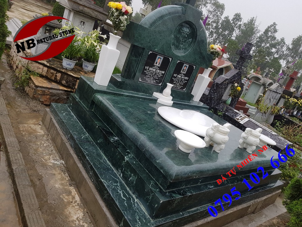 Mẫu mộ đôi bằng đá xanh rêu.