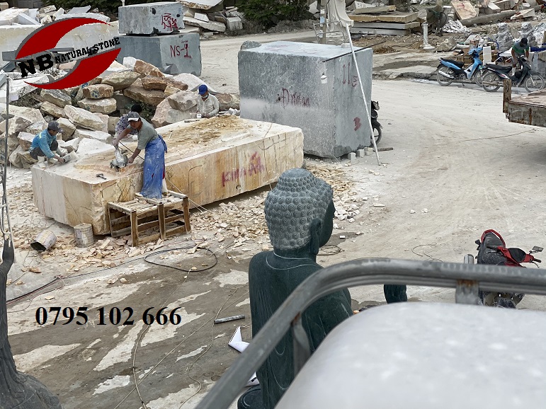 (biển hiệu đá khối đang được chế tác tại phân xưởng làng đá non nước Đà nẵng)
