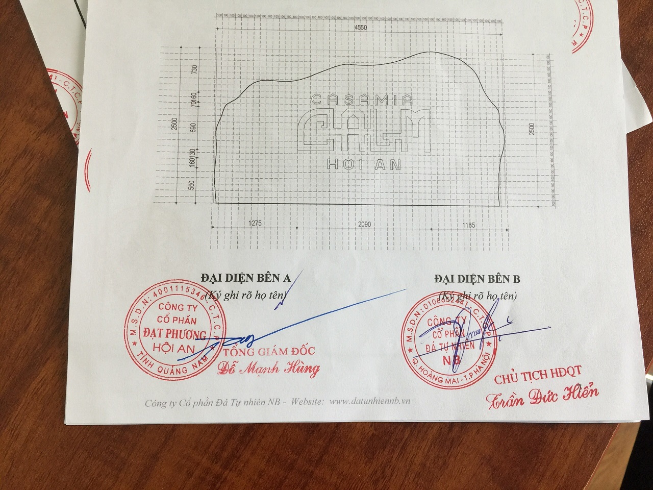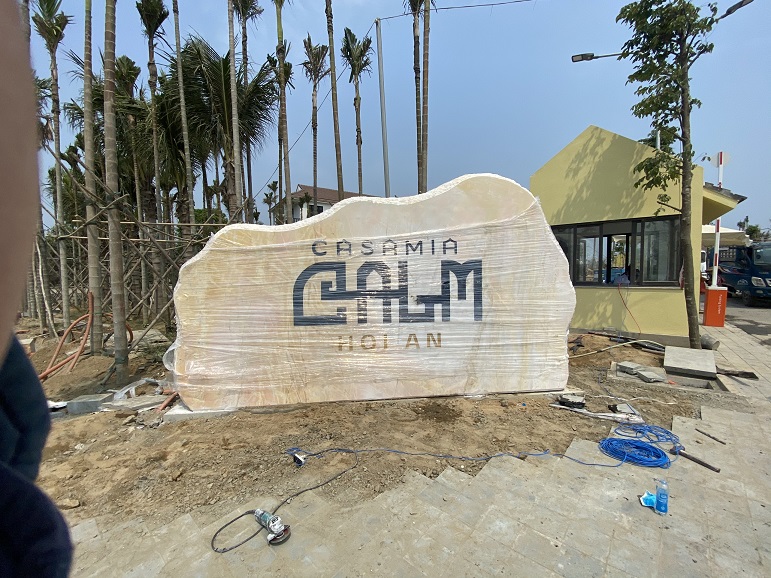 Bàn giao biển hiệu đá khối mầu vàng cho đô thị casamia calm hội an