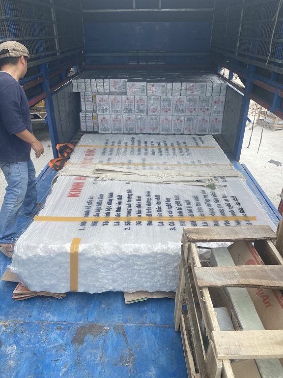 (Bọc giấy bóng biển hiệu đá khối vận chuyển đến công trình)