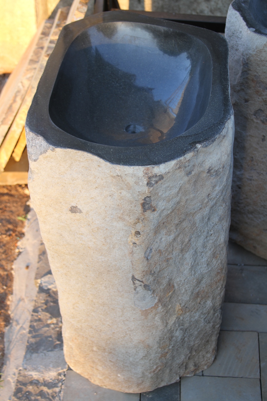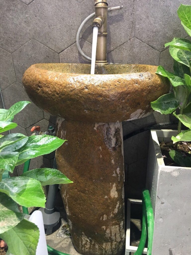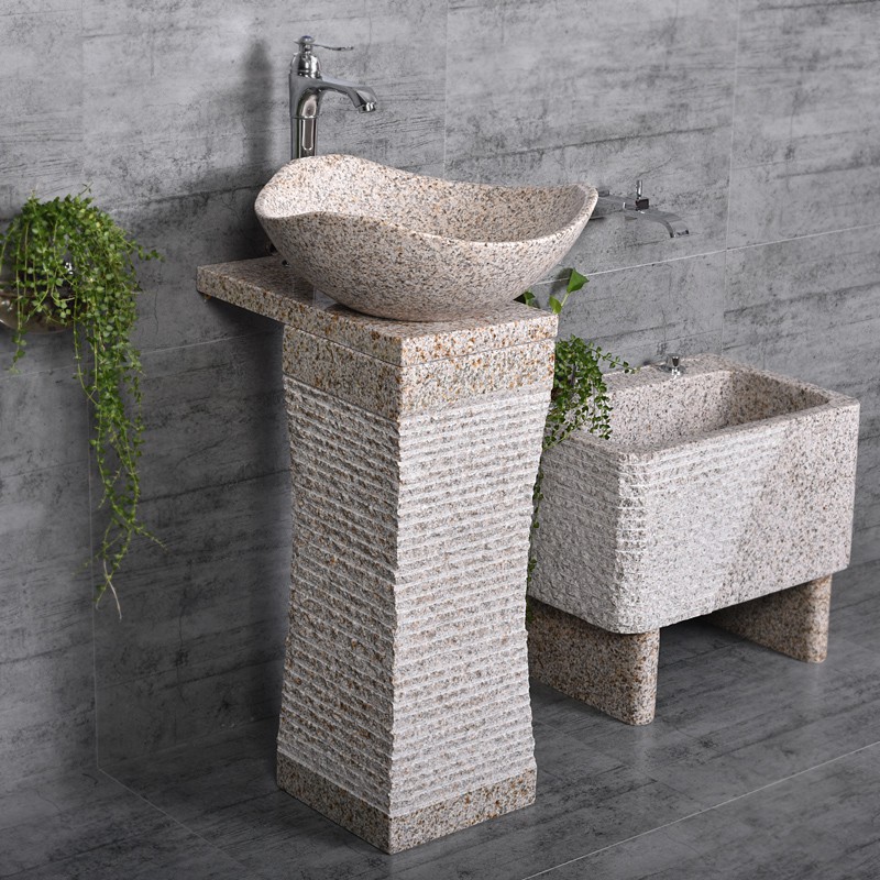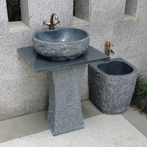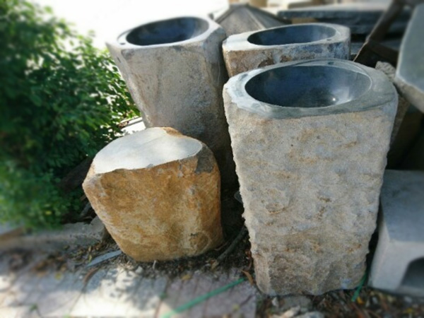 Các thiết kế bồn rửa bằng đá tự nhiên không cần bàn kê, các dạng thiết kế này thường xuất hiện trong các sân vườn, bên các vườn nướng BBQ hay trong các resort có khu ẩm thực riêng để du khách tiện rửa tay sau khi dự tiệc, kiểu thiết kế này thường đi với các bộ sản phẩm vòi đồng của các hãng như Kanly...