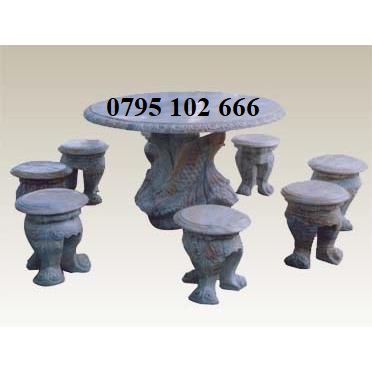 Bàn ghế đá là hạng mục ngoài trời thường xuất hiện bên cạnh các hồ cá koi, các vườn nướng BBQ hay các sân vườn tiểu cảnh, các lăng mộ dòng tộc để làm nơi sắp lễ. Có nhiều kiểu bàn ghế đá khác nhau như bàn ghế tiện tròn, tiện vuông, tiện lục lăng hay để mộc tự nhiên, bàn ghế sofa đá... với các kích thước khác nhau.