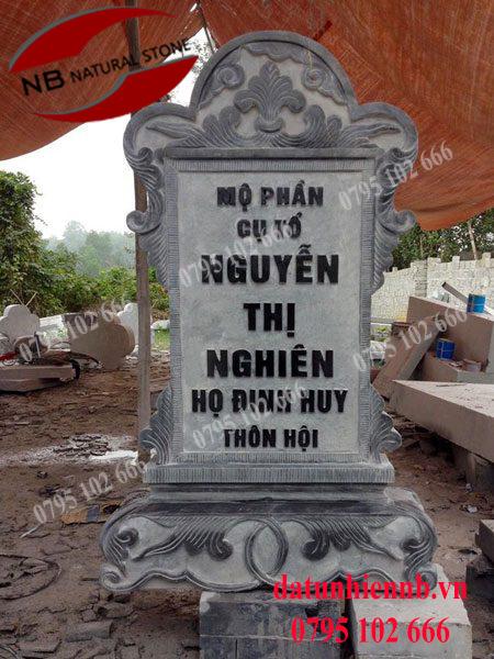 Bia đá là một khối đá nhiên nguyên khối được trạm khắc chữ và hoa văn theo yêu cầu. Tất cả sản phẩm của chúng tôi đều được làm bằng đá tự nhiên, trạm khắc tinh xảo trên máy kỹ thuật số CNC nên chữ đều, thẳng và rõ nét, trạm khắc sâu vào đá, sơn chịu nhiệt nên rất bền vững với thời gian. Bia có nhiều mẫu mã và kiểu dáng.