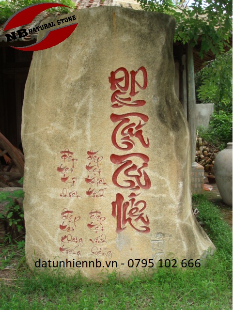 Biển đá cuội chạm chữ.