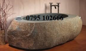 Bồn tắm bằng đá nguyên khối là hạng mục công trình nội thất cho nhà vệ sinh sang trọng. Bồn tắm đá thường đi cùng các thiết bị cấp thoát và sen vòi bằng đồng giả cổ. Bồn tắm đá có loại tự nhiên xù xì, loại mài bóng hiện đại với đá màu trắng là chủ đạo, một vài nơi sử dụng mầu đen hoặc vàng nhưng không nhiều.