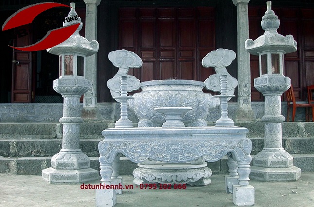 Lư hương đá thường được đi kèm với đôi đèn đá , đôi Hạc đá và bàn lễ đá. Tạo ra một bộ sản phẩm thờ cúng không thể thiếu trong các công trình tâm linh việt.